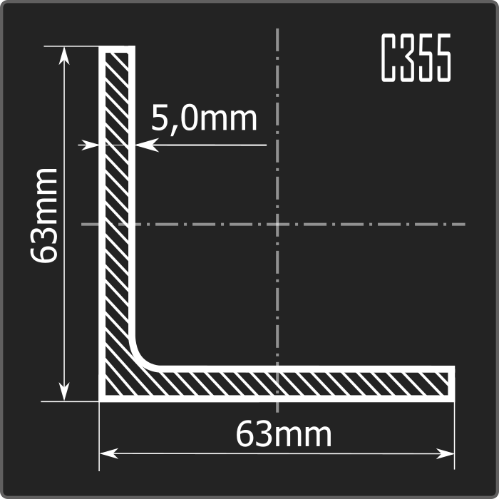 Угол 63*63*5,0 С355 12м ГОСТ 27772-2021/ГОСТ 27772-2021