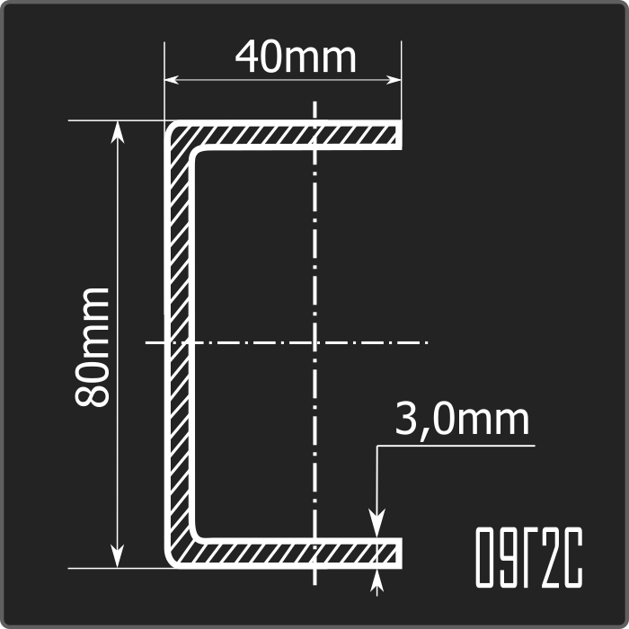 —Швеллер холоднокатаный 80*40*3,0 09Г2С Феррум 12м ГОСТ 19281-2014