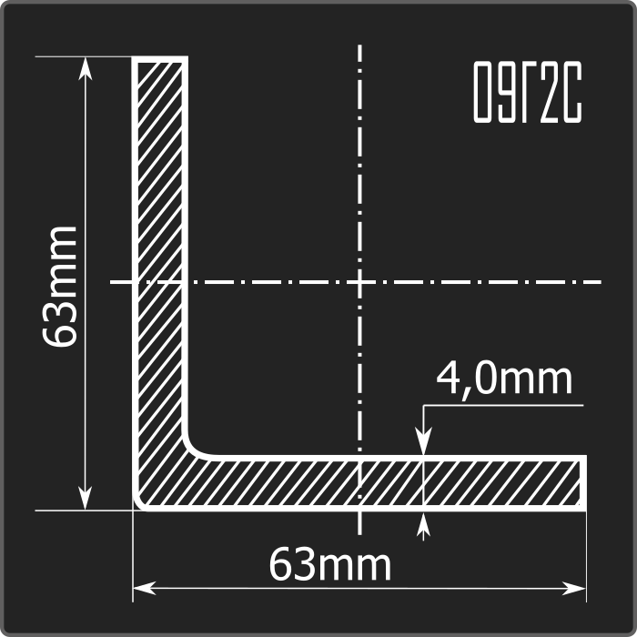 Угол стальной холоднокатаный гнутый равнополочный 63*63мм, толщиной 4,0мм и длиной 12м. Материал - низколегированная сталь. Соответствует требованиям ГОСТ 19281-2014.