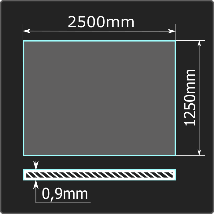 Лист стальной холоднокатаный толщиной 0,9мм, шириной 1250мм и длиной 2500мм. Сталь 08пс. Соответствует требованиям ГОСТ 16523-97.