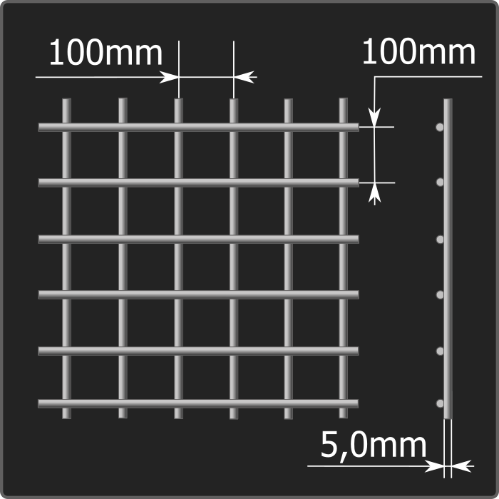 Сетка сварная с размером стороны ячейки 100*100мм из термический необработанной проволоки диаметром 5,0мм шириной карты 1,0м и длиной 3,0м. Соответствует требованиям ТУ 25.93.13-001-03876796-2019.