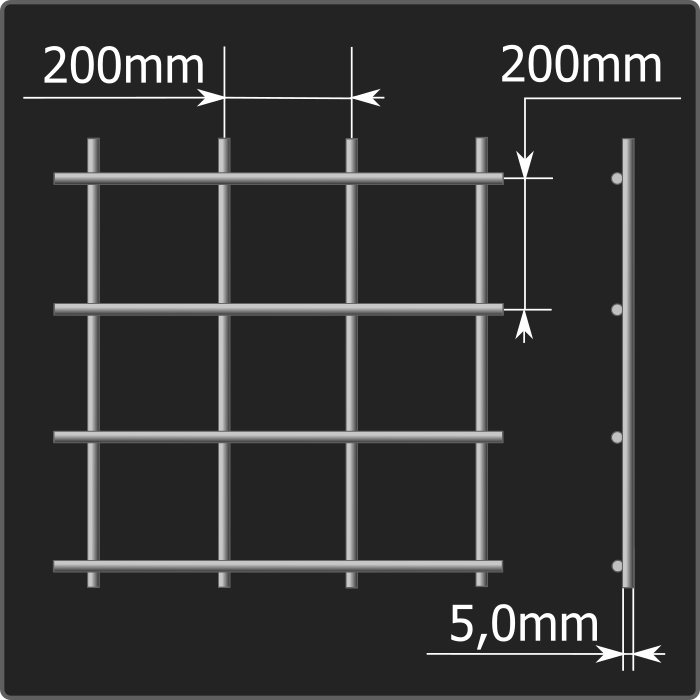 Сетка сварная с размером стороны ячейки 200*200мм из термический необработанной проволоки диаметром 5,0мм шириной карты 1,0м и длиной 3,0м. Соответствует требованиям ТУ 25.93.13-001-03876796-2019.
