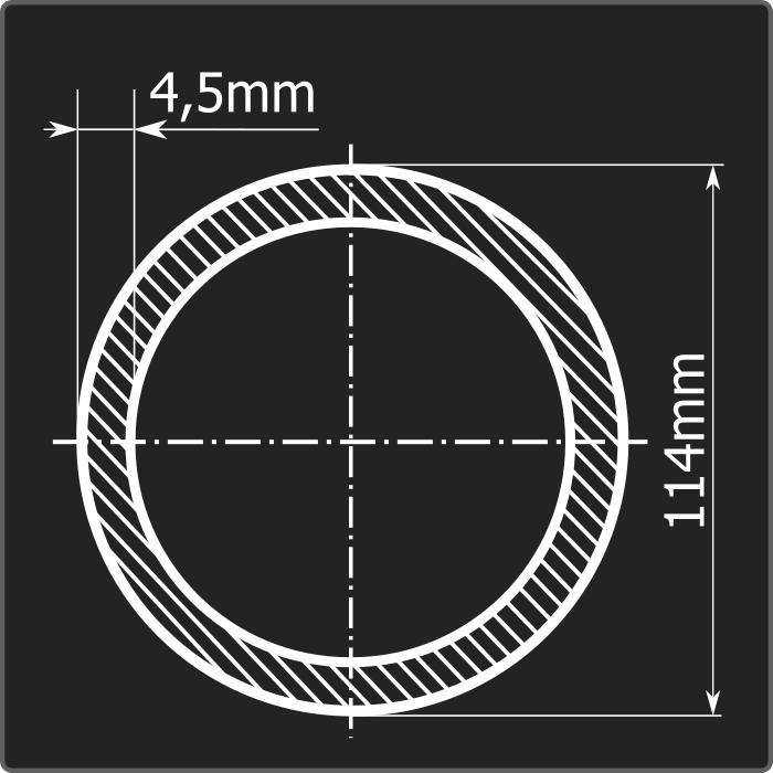 Труба электросварная стальная круглого сечения диаметром 114мм, толщиной 4,5мм и длиной 12м. Материал - углеродистая сталь. Соответствует требованиям ГОСТ 10705-80.