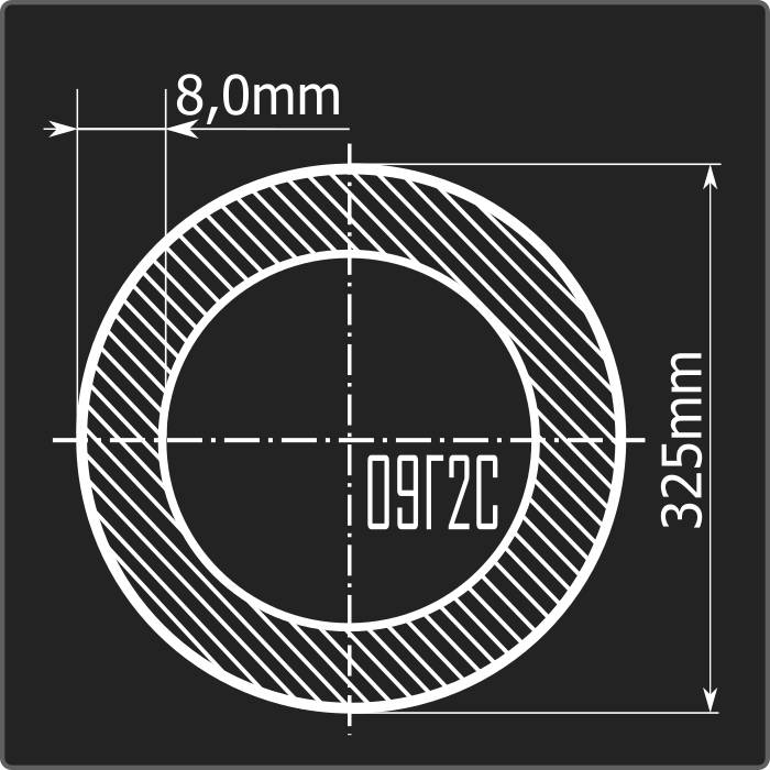 Труба электросварная стальная круглого сечения диаметром 325мм, толщиной 8,0мм и длиной 12м. Материал - низколегированная сталь. Соответствует требованиям ГОСТ 10705-80.