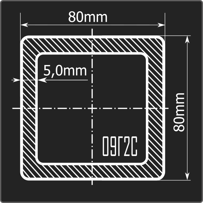 —Труба проф. 80*80*5,0 09Г2С Феррум 12м ГОСТ 13663-86