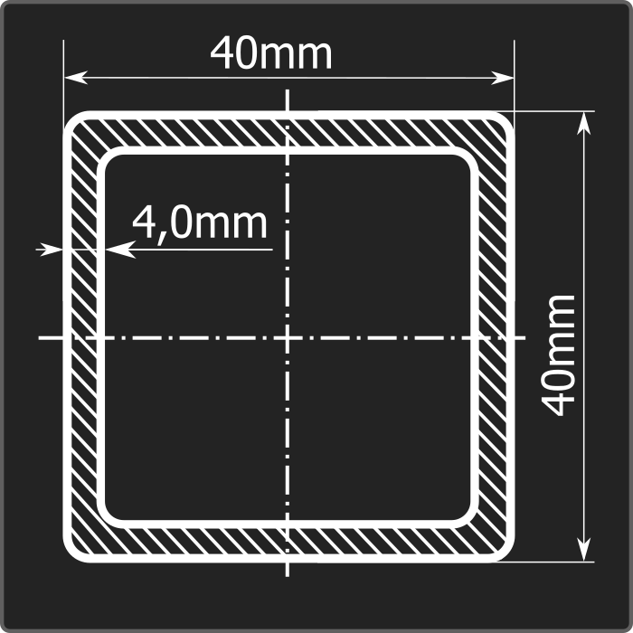 Труба профильная стальная квадратного сечения 40*40мм, длиной 6м и толщиной 4,0мм. Материал - углеродистая сталь. Соответствует требованиям ГОСТ 13663-86. Стандартный пакет: вес - 3,715тн., количество - 144шт.