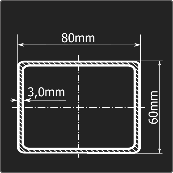 Труба профильная стальная прямоугольного сечения 80*60мм, длиной 12м и толщиной 3,0мм. Материал - углеродистая сталь. Соответствует требованиям ГОСТ 13663-86.